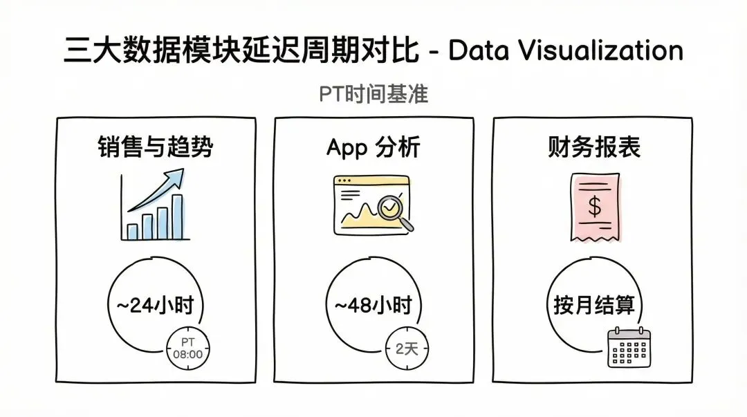精准掌握各模块的数据延迟规则和更新时区,是做好数据分析、运营决策与财务对账的前提。