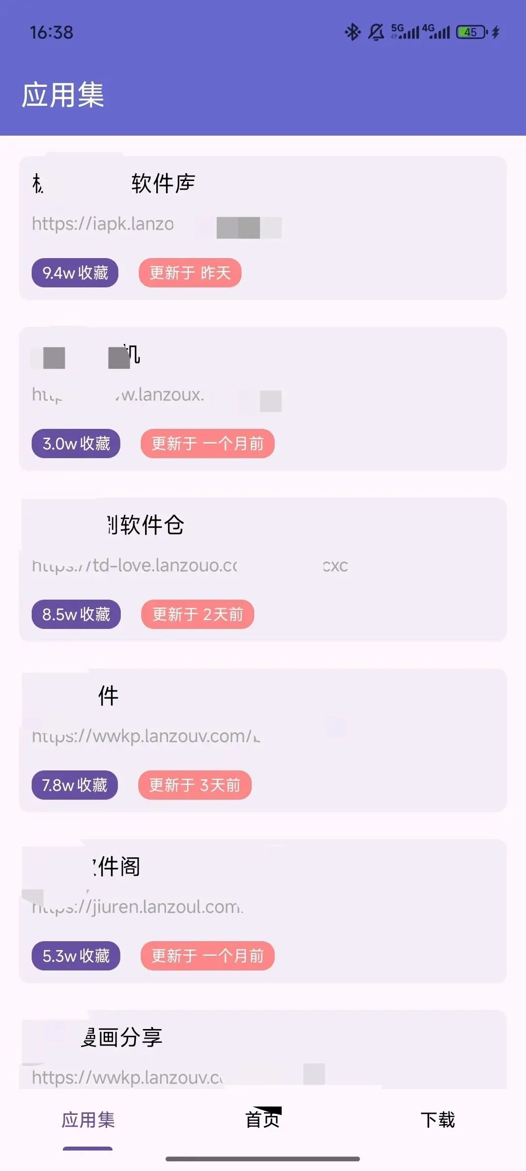 还有应用集,这里是网络上大家分享的各种资源集合,每一个集合都好几万收藏,打开可以看到各种分类,比如X说、M画、工具等等。