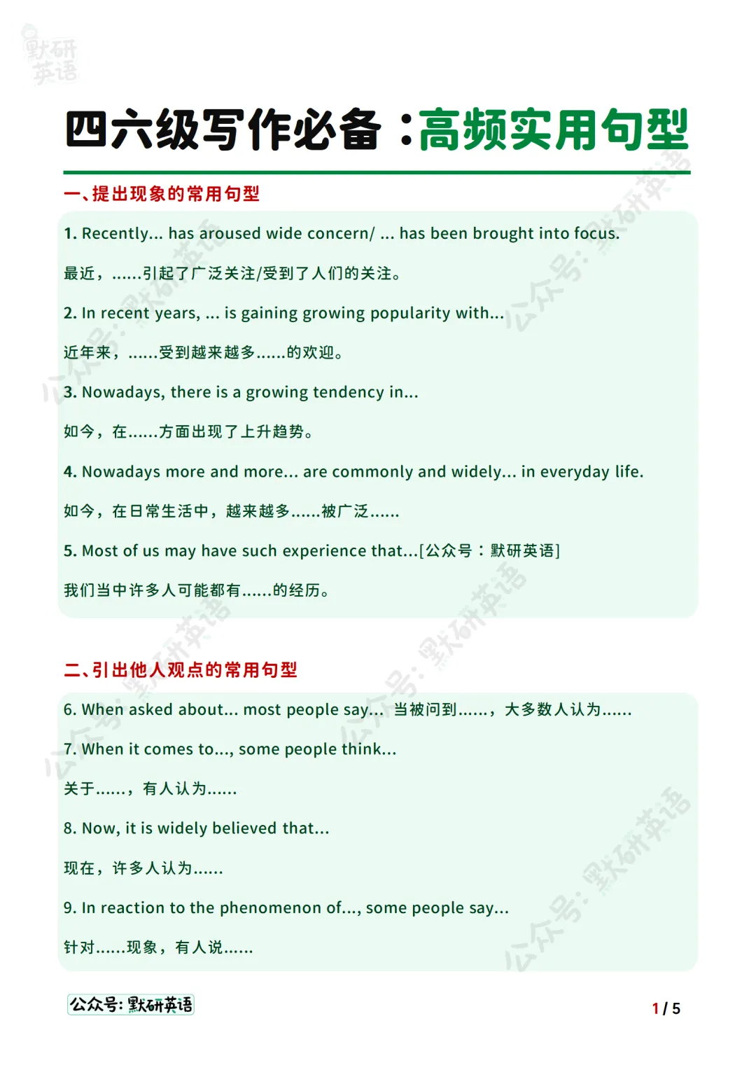 其实四六级写作根本不用死磕范文,抓准核心常用句型才是提分关键!整理的这份四六级常用写作句型,覆盖开头引入、中间论证、过渡衔接、结尾总结全场景,都是真题高频考点,简单易背、直接套用,不管是议论文、应用文还是图表作文,都能 hold 住!