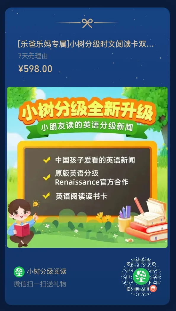 最后我想说,现在家长给孩子选英语产品,太容易焦虑了:总想着要最快提分,要一步到位,要性价比最高。可我做了这么多年,最深的感受就是:保护好孩子的兴趣,让孩子愿意读,比什么都重要。小树分级就是这样一个产品:它不催你,不逼你,就是把孩子感兴趣的、适合中国孩子的英文新闻放在你面前,孩子愿意点开,就已经赢了。