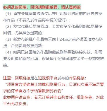 创作完成并确认无误后,便可将作品发布到平台,发布时务必添加话题#网易云有声书。发布完成后,要及时进行回填,回填直接影响收益,因此必须认真遵守回填规则,确保准确无误。
