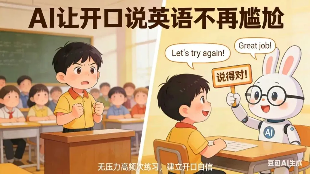 小学生学习英语,“不敢开口”和“枯燥难懂”是两个常见的拦路虎。AI恰恰能解决这两个问题。
