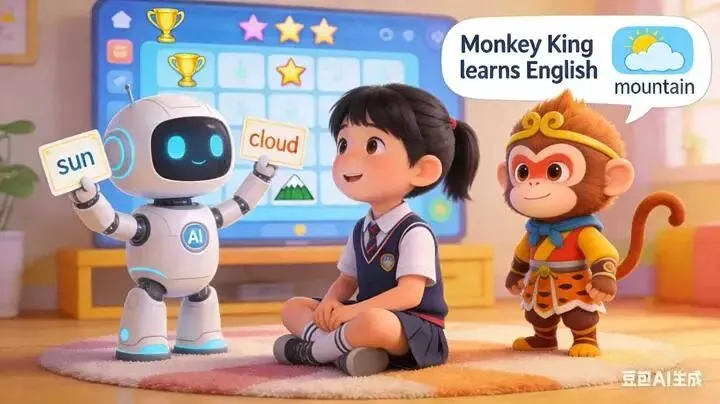 AI让英语学习变得“好玩”。 小学生天生爱游戏、爱故事。AI可以化身“智能伙伴”,陪孩子在玩中学,如进行单词闯关游戏、语句找茬挑战,或根据孩子喜欢的动画角色生成故事。比如,孩子喜欢奥特曼,AI就能生成一个“奥特曼打怪兽”的小故事,让孩子在兴趣中不知不觉进行了阅读。