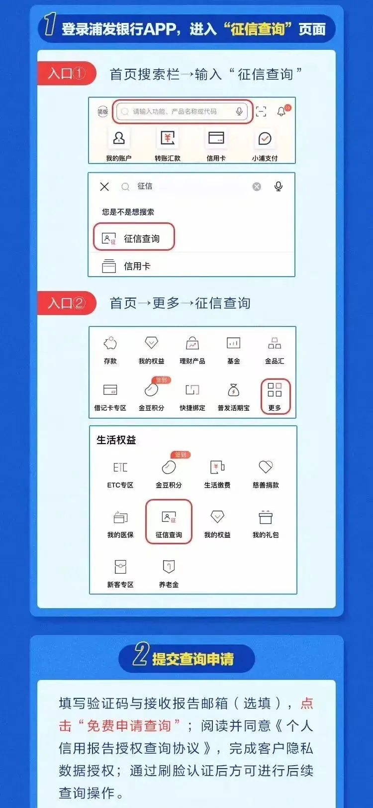【浦发银行】手机app个人征信,如何在线查询? 建议收藏 1、登录浦发银行APP,进入“征信查询”页面 分割线 真正的价值,在于当你遇到难题时,我能刚好拿出那个“最优解”。 不想错过每一个与高手同行的机会,如果你也对金融、融资感兴趣,欢迎扫码/搜索添加我的微信,我们慢慢聊。