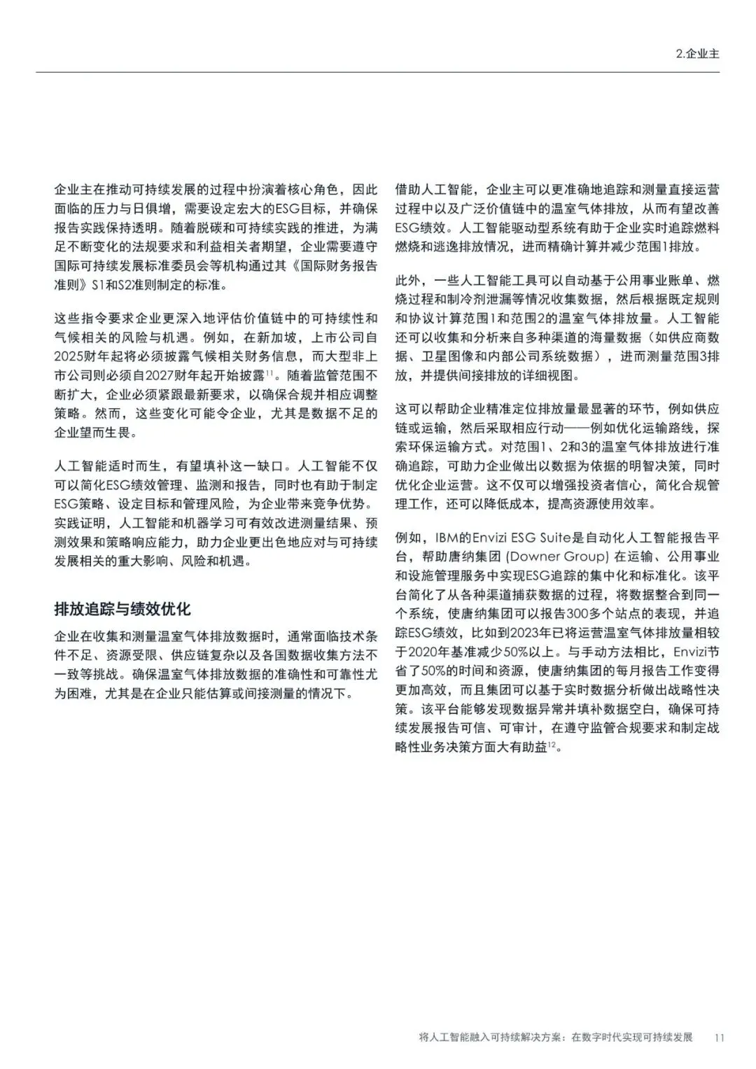 同时,报告也直面数据隐私、算法偏见、碳足迹、技术资金壁垒等关键挑战,提出包含公平、透明、可持续等核心属性的负责任人工智能治理框架,结合微软、华侨银行等典型案例,具象化呈现技术与可持续目标的协同路径。