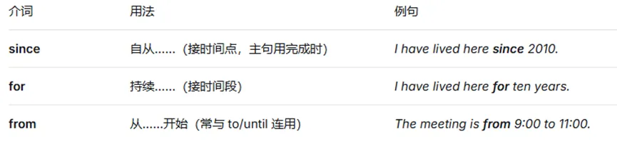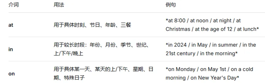 1. 时间介词