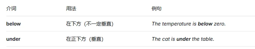 同理,below表示的相对高度较低(A比B更低),而under则表示正下方,也有表示具体点位的意思