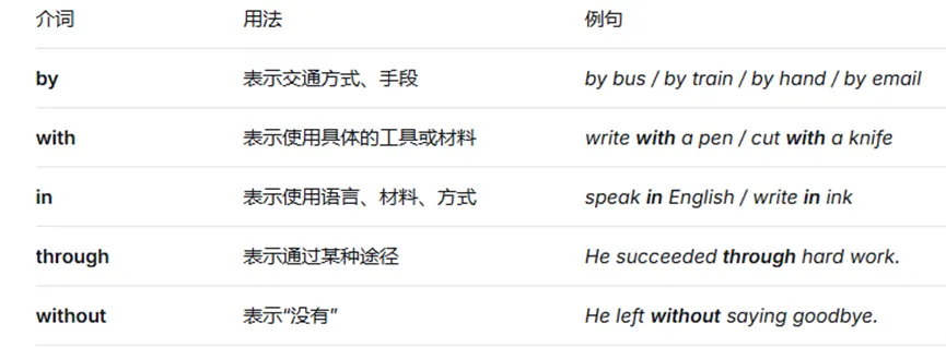 3. 方式/手段介词