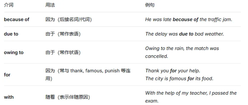4. 原因介词