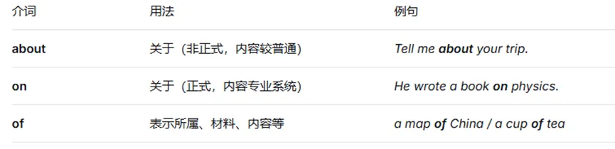 (3)about, on, of