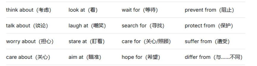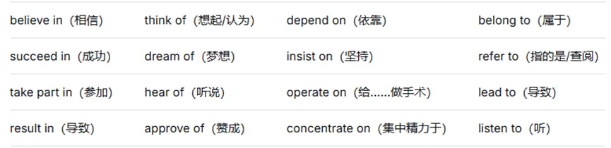 除了前面常用介词的用法区分以外,介词最难也是最麻烦的点在于它和动词、形容词等之间的搭配。