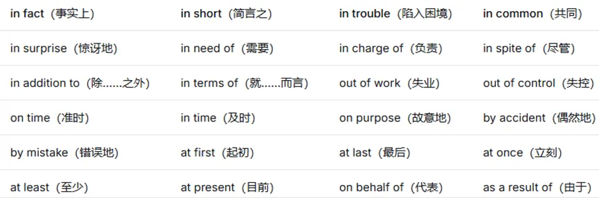 4. 常见介词短语
