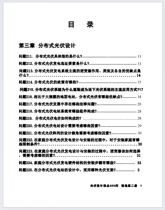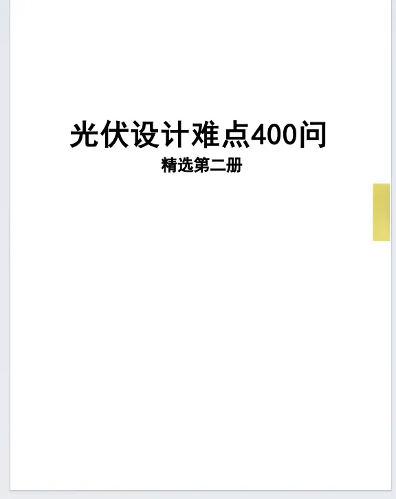 光伏设计难点400问(第二册).pdf 今天小盒子分享的干货内容是《光伏设计难点400问(第二册).pdf》供大家参考,文末可领取高清无水印PDF文件。 需要高清源文件 扫码添加好友 回复“ 光伏401” 2025光伏热门项目、人脉资源 责任编辑:北一 审核:诸葛 ↓点击阅读原文,报名光伏盒子年度VIP会员!