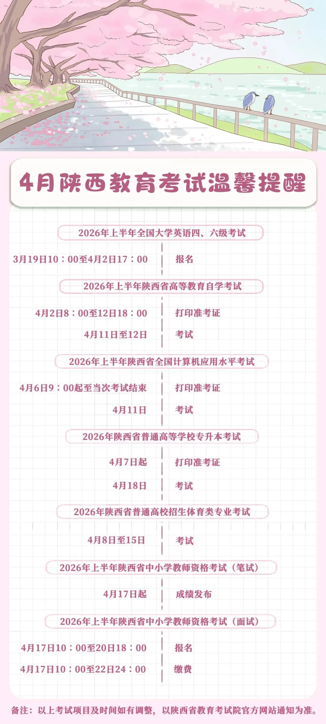 速收藏!陕西4月4项考试开考,3项准考证可打印 四月将有4项考试开考 3项考试打印准考证 已为大家整理好 本月需要关注的考试事项 建议大家收藏哦~ 以上就是本月需要关注的考试信息 祝大家 乘风破浪,所向披靡! 来源:陕西省教育厅 亲爱的朋友:如果你心里有话想说,可别错过底部的【写留言】呦,在这里你可以发表自己的观点!点击【阅读原文】即可进入>>商南便民网 点分享 点收藏 点在看 点点赞