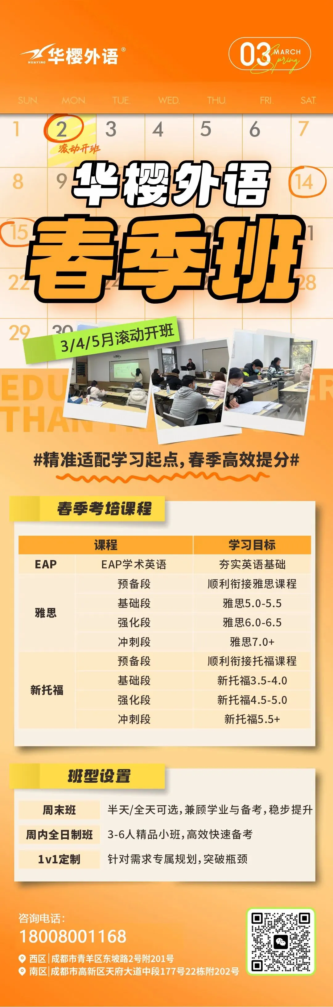 如果你希望更快掌握雅思备考技巧,或者在练习中遇到瓶颈需要专业指导,成都华樱雅思考试辅导班可以帮你。华樱注重方法教学,结合真题实战,帮助学员在短时间内提升阅读速度与准确率。
