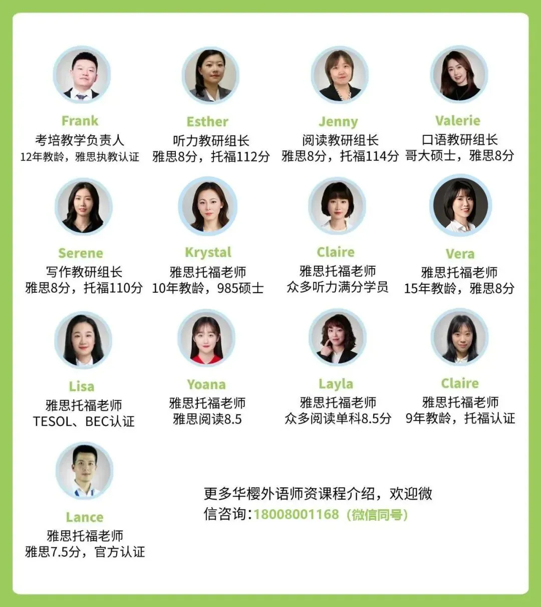 华樱外语拥有一支平均教龄8年+的专业师资团队