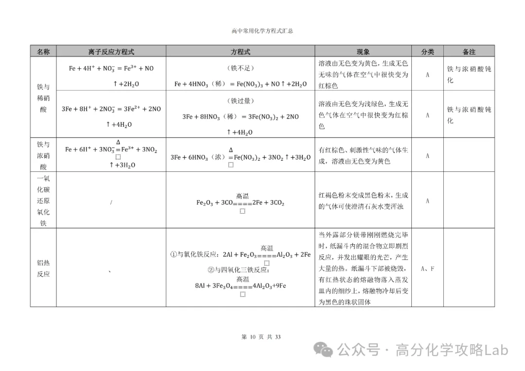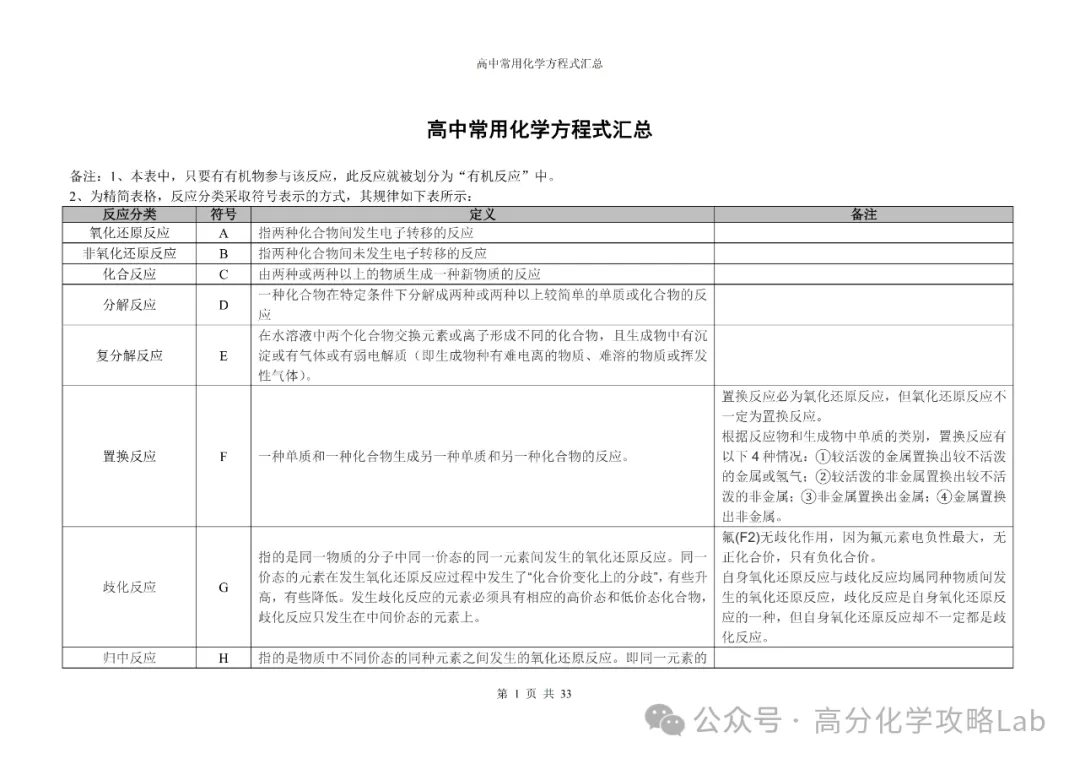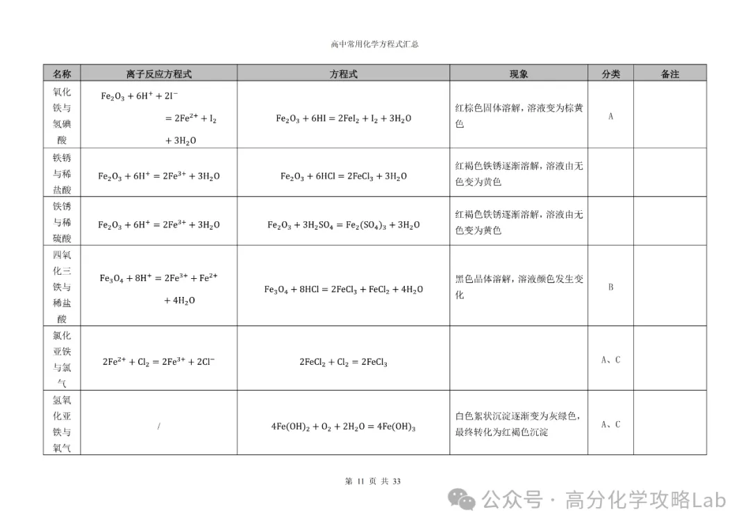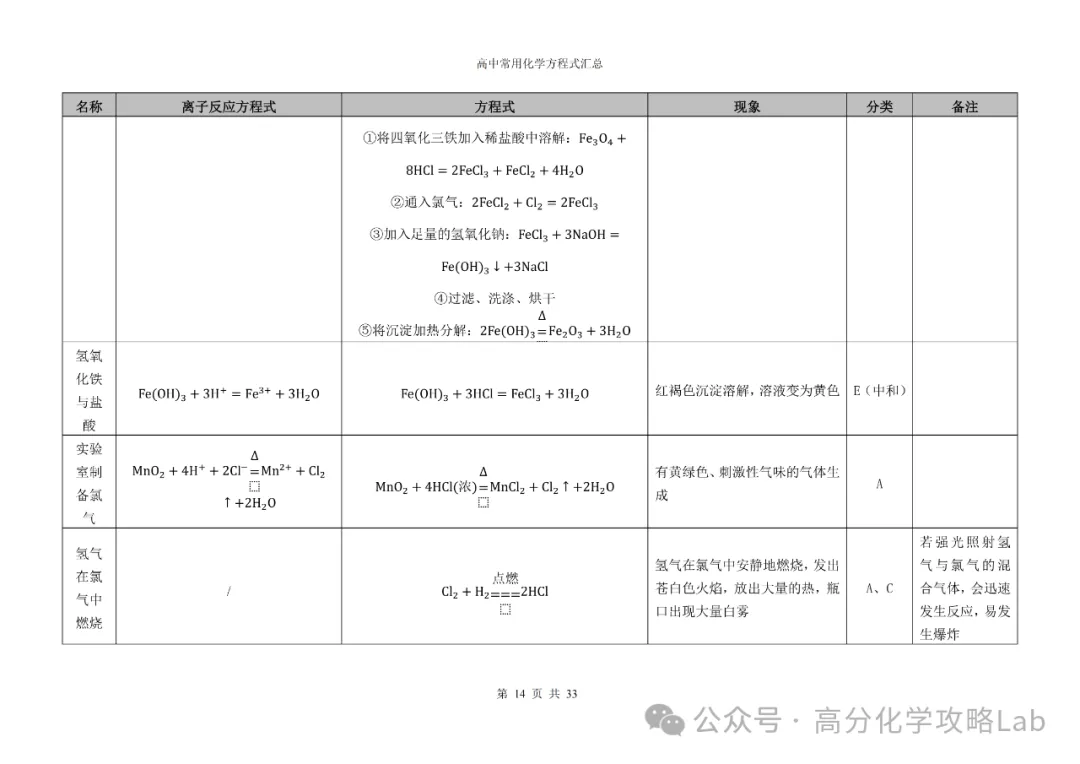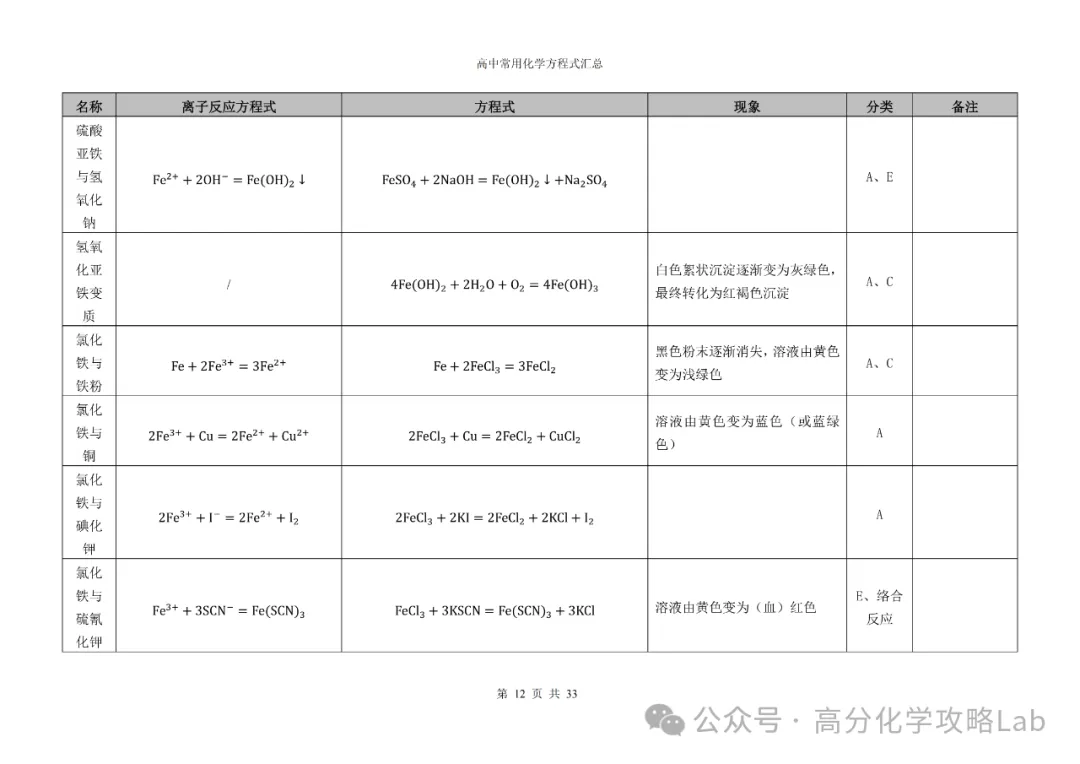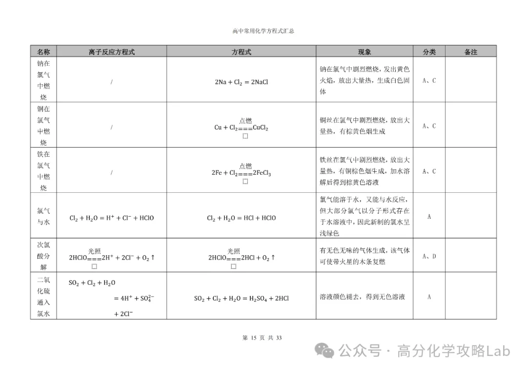 【方程式】高三化学卡片式方程式汇总(PDF可下载)