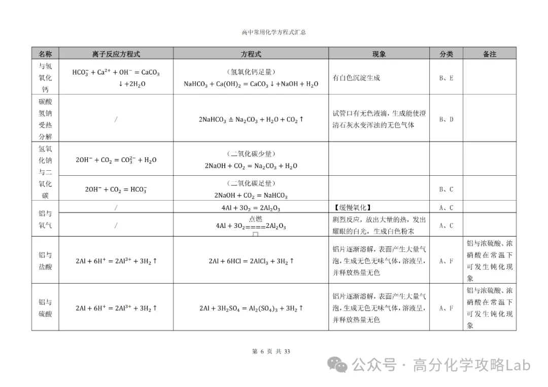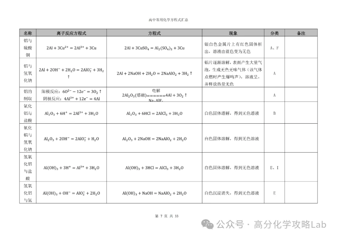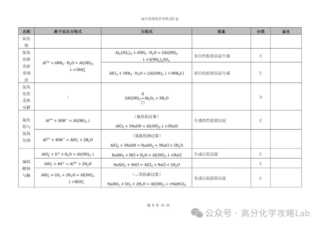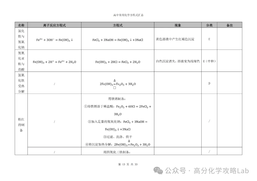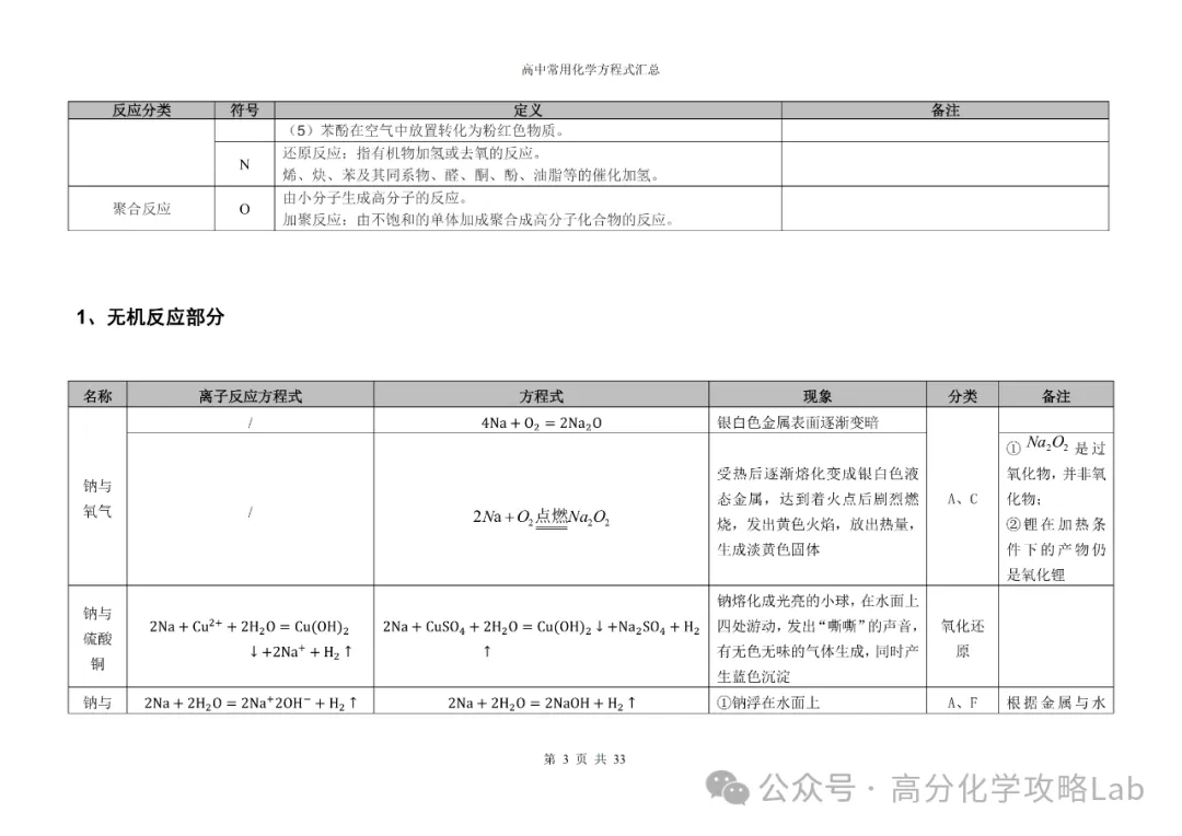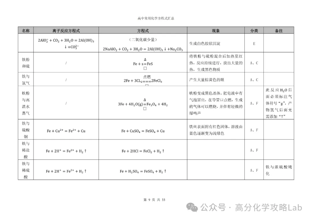 【方程式】高三化学卡片式方程式汇总(PDF可下载)