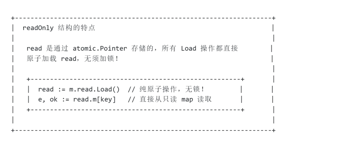 readOnly.m 是一个普通 map,但通过 只创建一次、从不修改 的方式实现了并发安全: