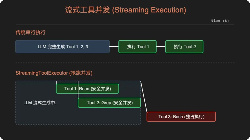 Claude Code 用 StreamingToolExecutor(抢跑并发)彻底改变了这一模式: