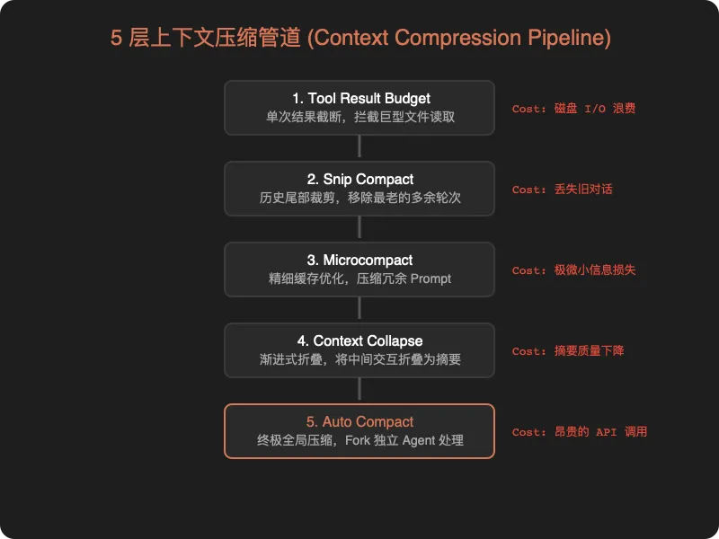 4. 5 层上下文压缩管道:分层递进,轻量操作优先,代价递增 -