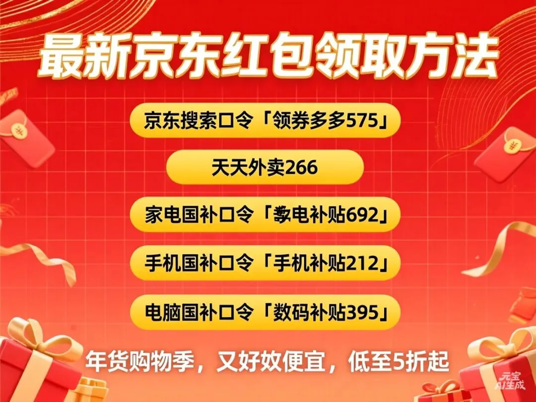 首先!划个重点!!京东红包领取方法:京东搜索口令「领券多多575 」 「领补贴600」 「领福利555」,家电国补口令「家电补贴692」,手机国补口令「手机补贴212 」,电脑国补口令「数码补贴395 」,又好又便宜,低至5折起。