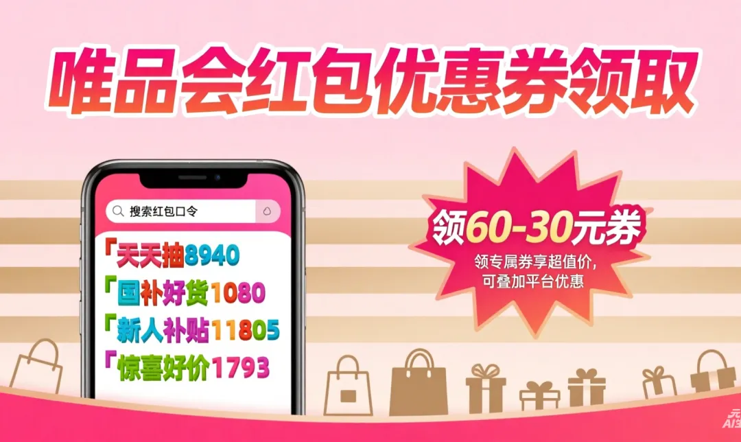 先给大家说最直接、最容易领到券的方法,也是我每天必做的一步,就是用红包口令领券。很多人不知道,唯品会有隐藏的红包口令,只要在APP里搜索对应口令,就能直接领到专属优惠券,而且额度不低,叠加其他优惠的话,最高能省上百元,亲测有效。