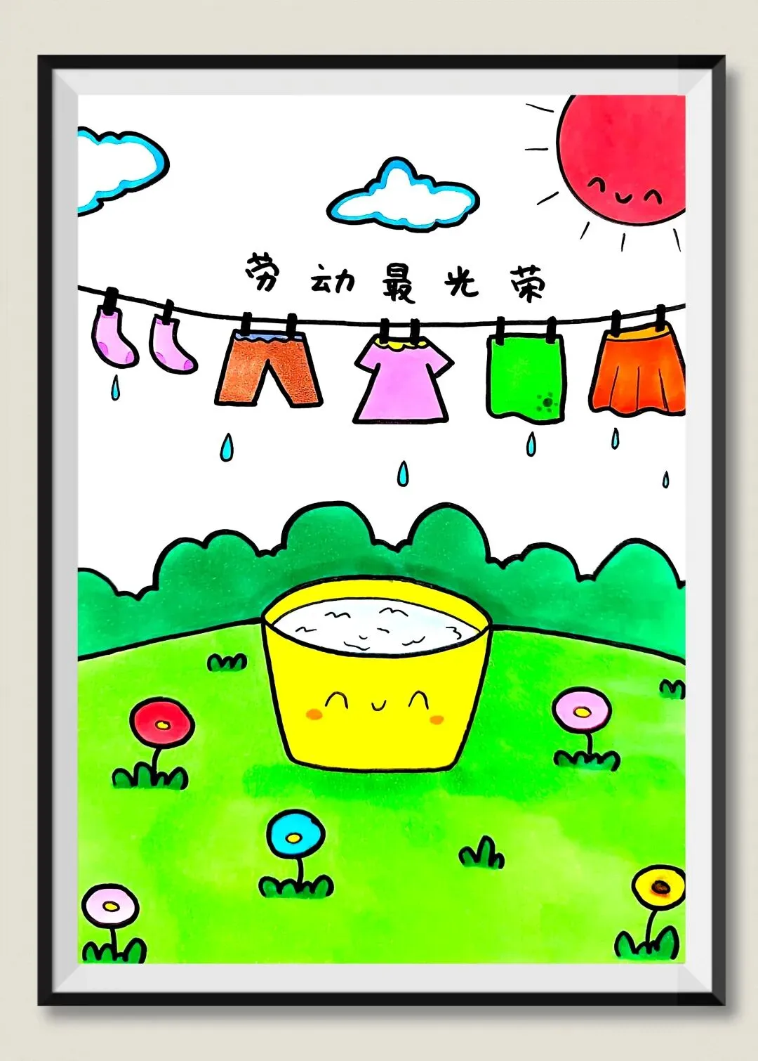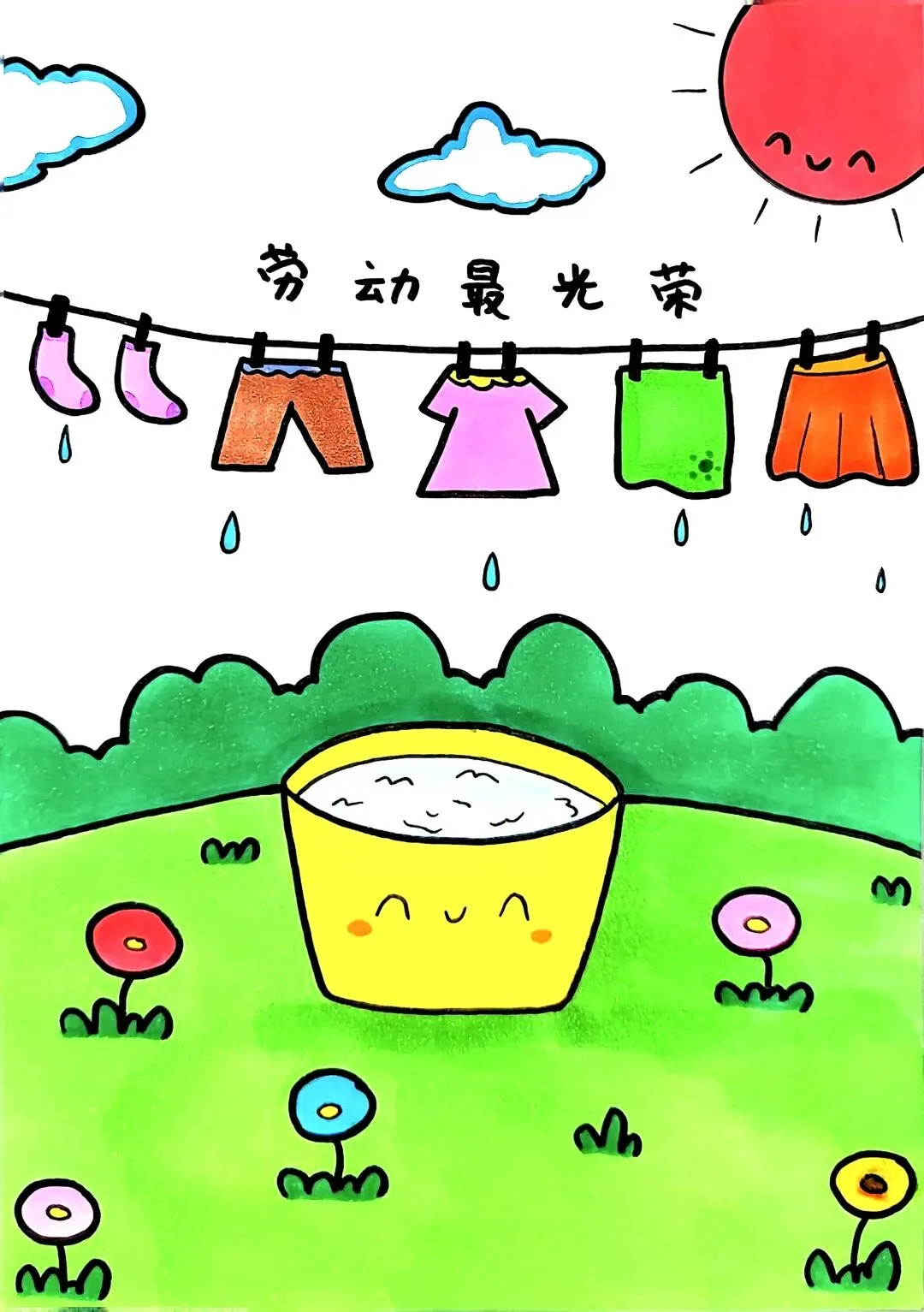 劳动节主题画|劳动最光荣(绘画步骤+可打印素材)