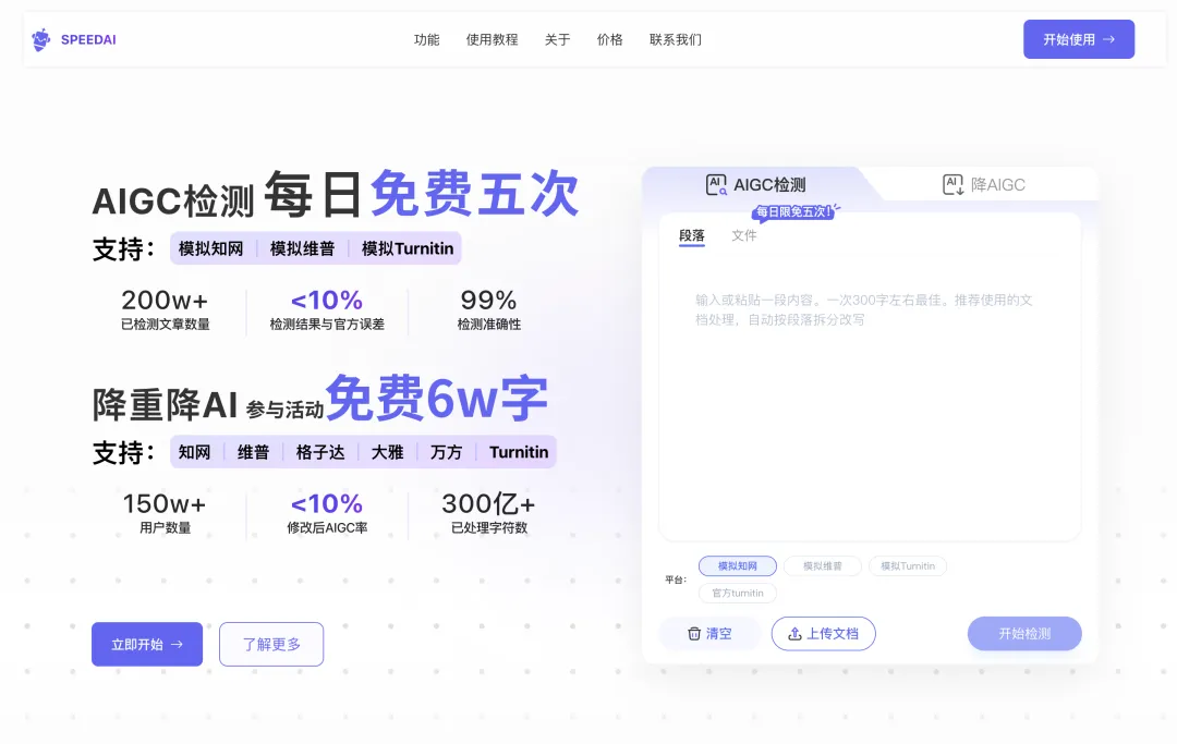 SpeedAI是一款专为科研工作者打造的智能AI助手,集学术降重、AI特征优化、专业润色、文献综述与报告生成等功能于一体。