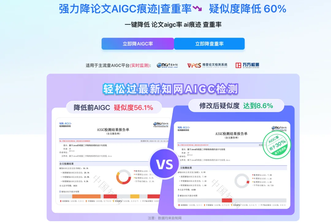 系统运用先进的语义重组算法,能精准识别并优化AI生成痕迹,将AIGC率降至15%以下,同时保持原文逻辑与学术严谨性。Aibiye支持生成AIGC风险报告,精准定位问题段落,通过同义词替换与句式重构实现智能优化。兼容知网、格子达、维普等主流检测平台,确保各类论文均可安全通过检测。