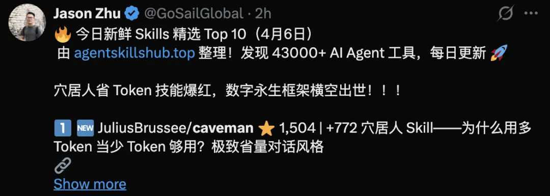「穴居人」省Token技能爆红!