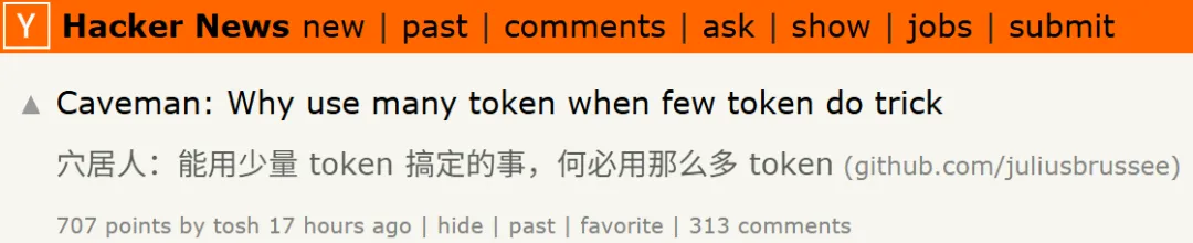 最近,一个叫「caveman」(穴居人)的Claude Code插件,在Hacker News炸了。