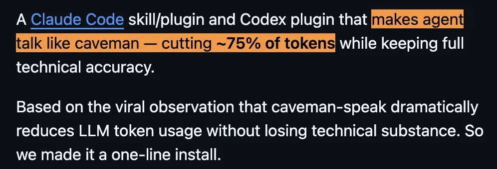 通过像洞穴人一样说话,在保持技术准确性的前提下,目标是把token用量压到更低。