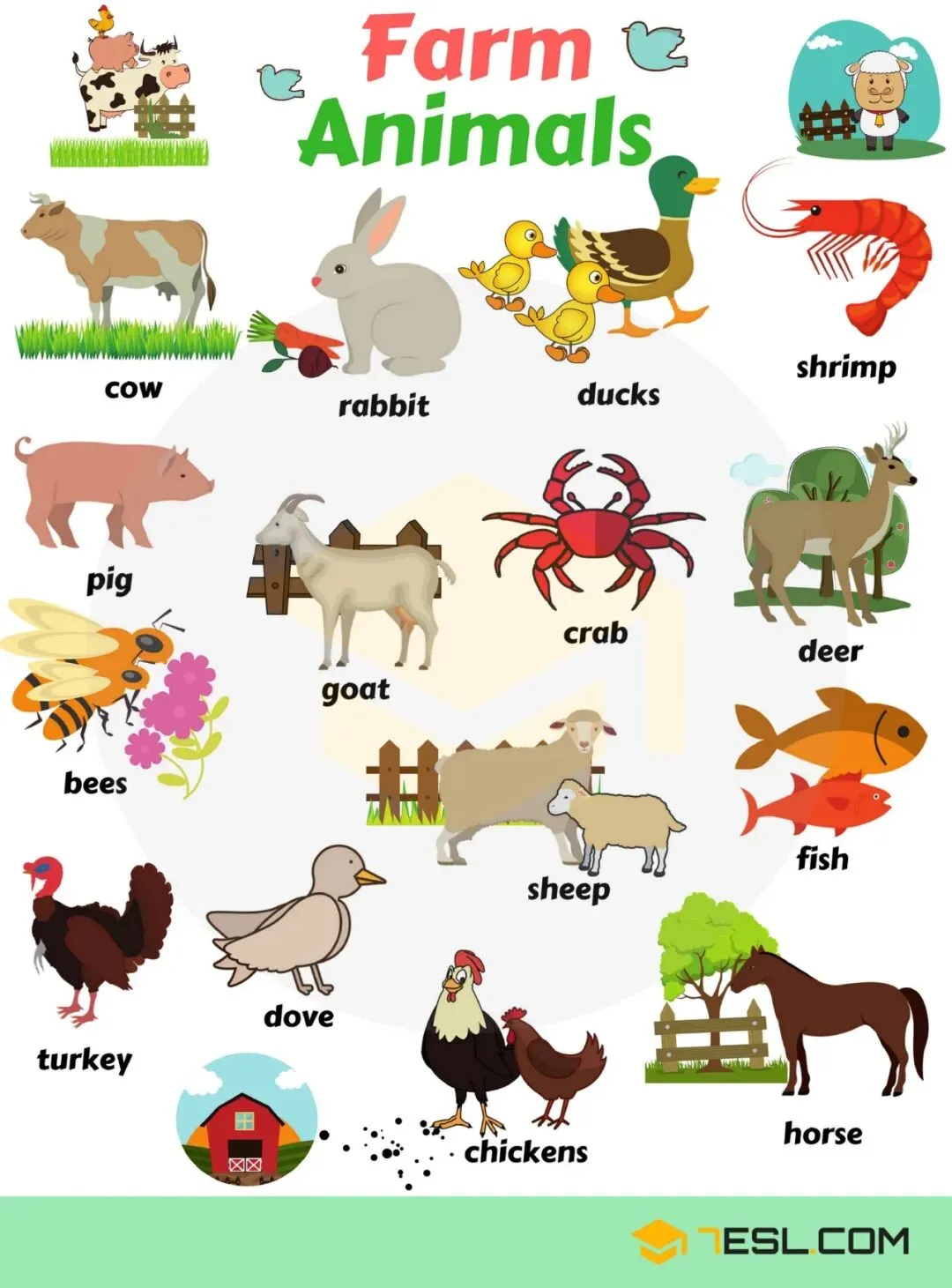 学习家畜、野生动物、鸟类、昆虫和海洋生物的名称。探索不同动物身体部位的特定词汇,例如爪子、尾巴和羽毛。