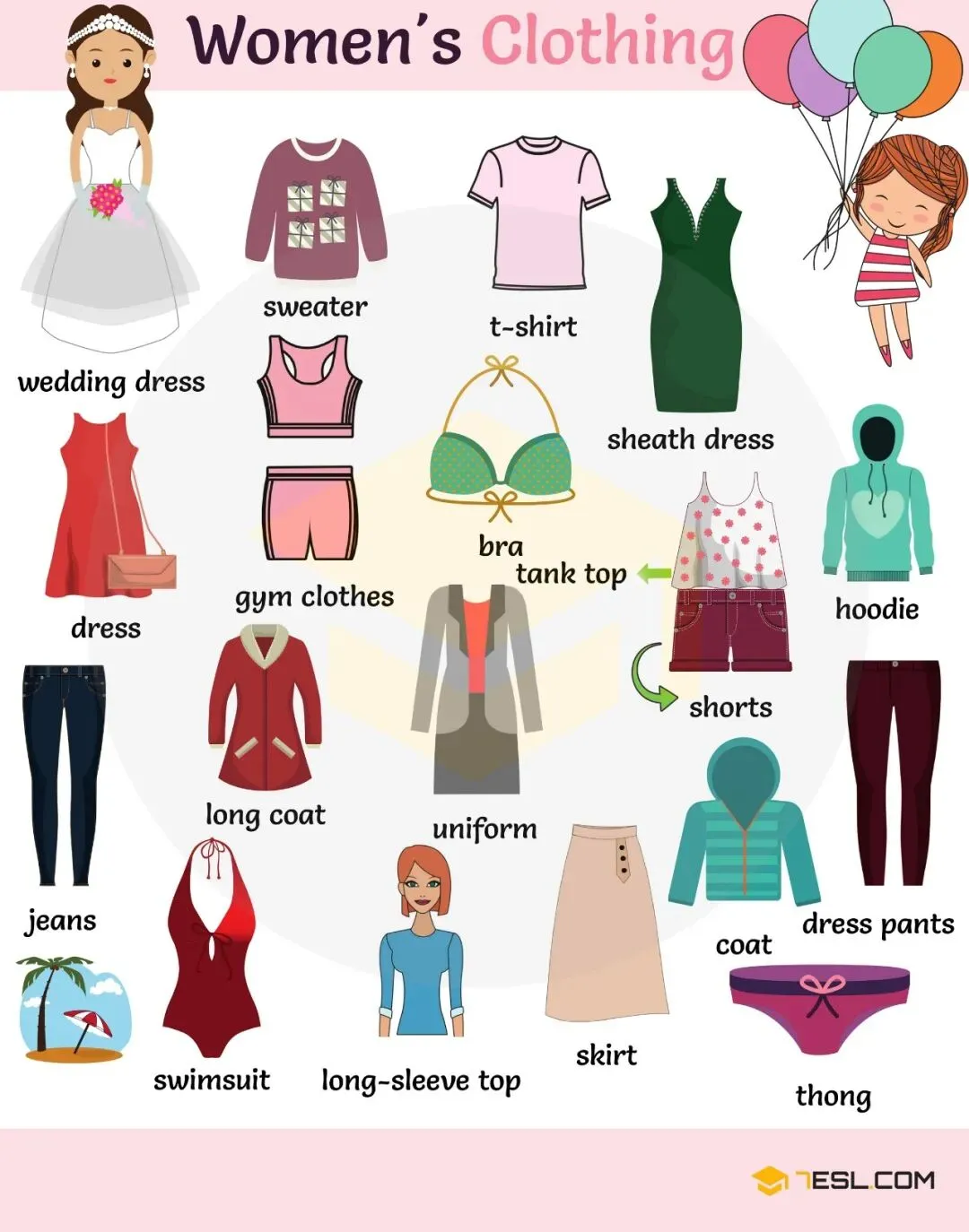 学习不同场合和天气条件下各种服装、鞋子和时尚配饰的名称。
