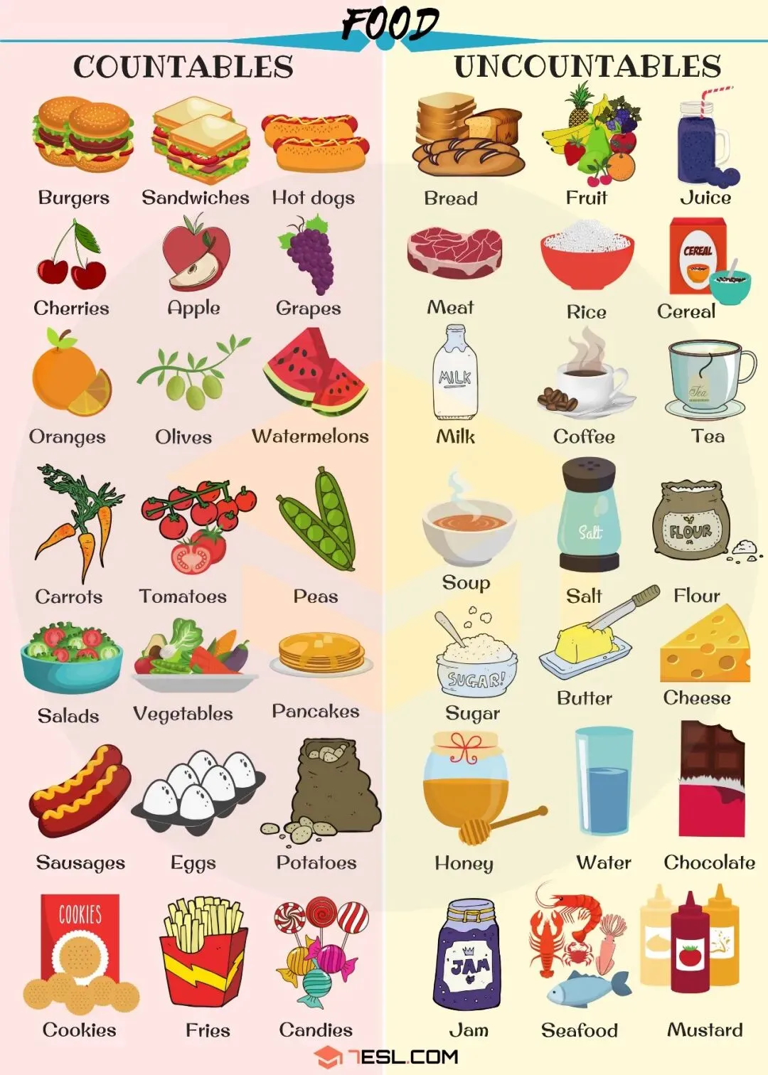 掌握不同类型食物、饮料和餐点的相关词汇,包括零食、饮料和国际美食。