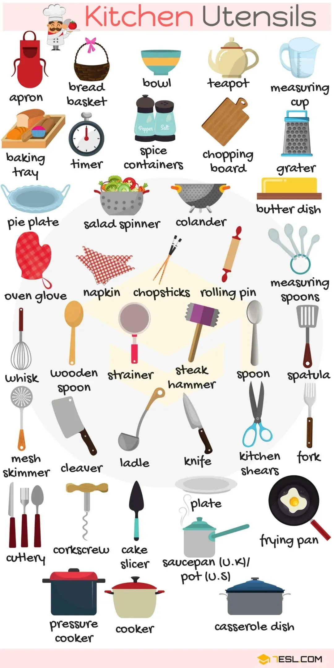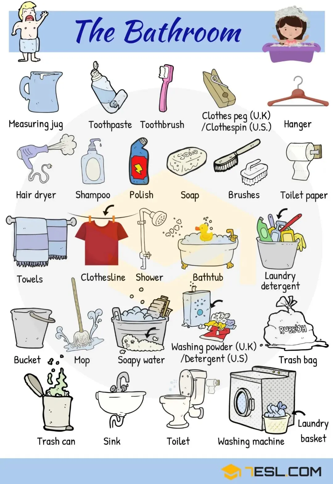 了解日常生活中常用家用工具、电器和清洁设备的名称。