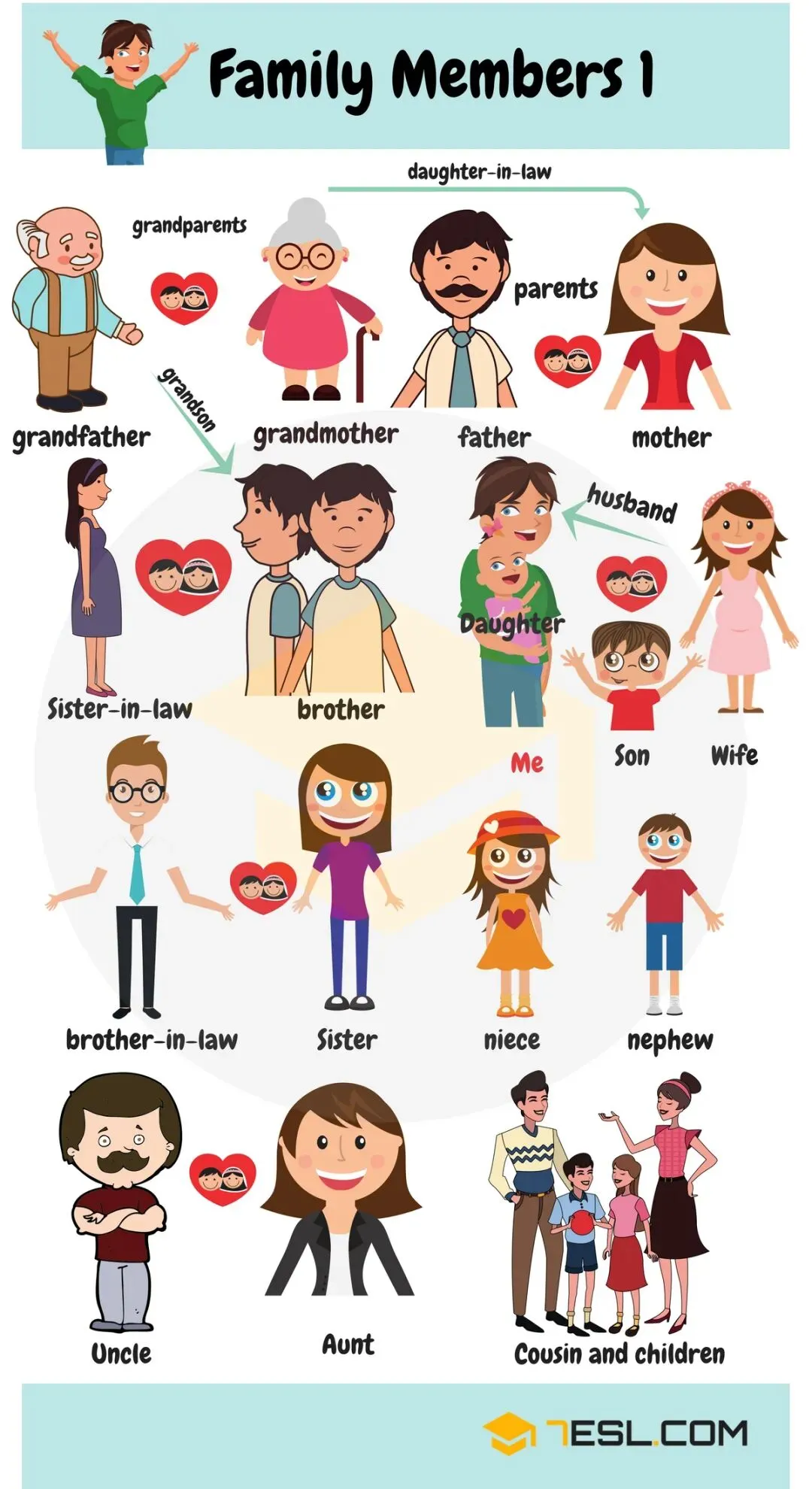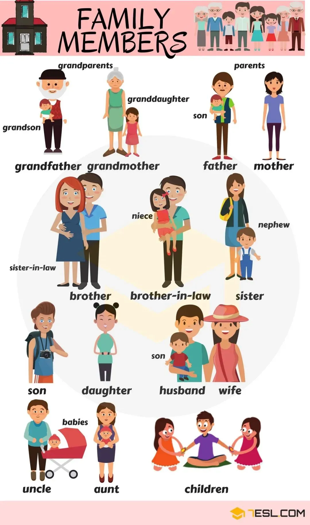 探索与家庭关系相关的词汇,从直系亲属到远亲。