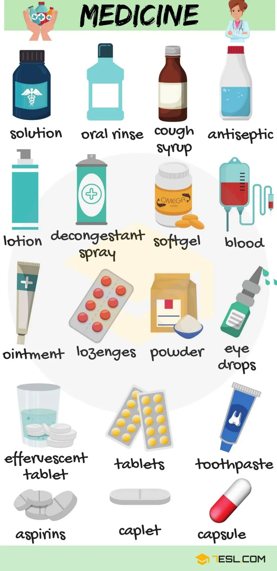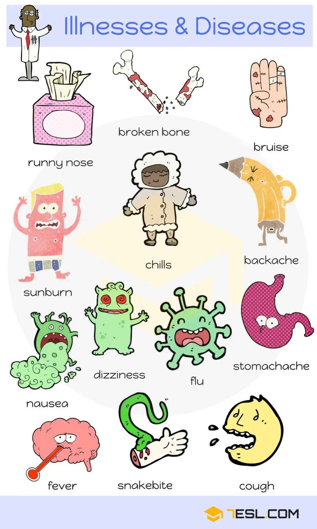 熟悉与健康相关的术语,包括常见疾病、症状、医疗方法和医院设备。