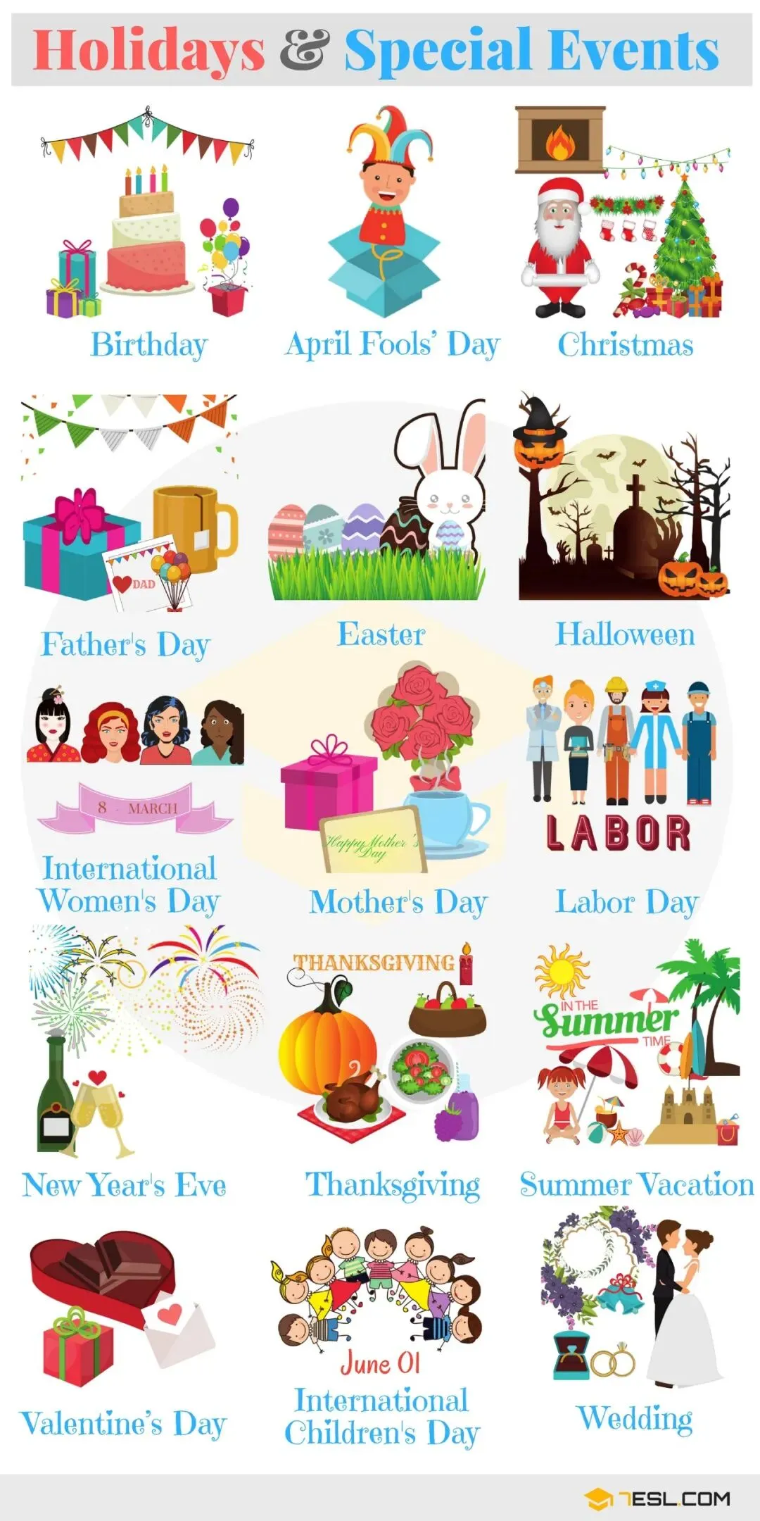学习与主要国际和文化节日相关的词汇,包括圣诞节、万圣节和新年庆祝活动。