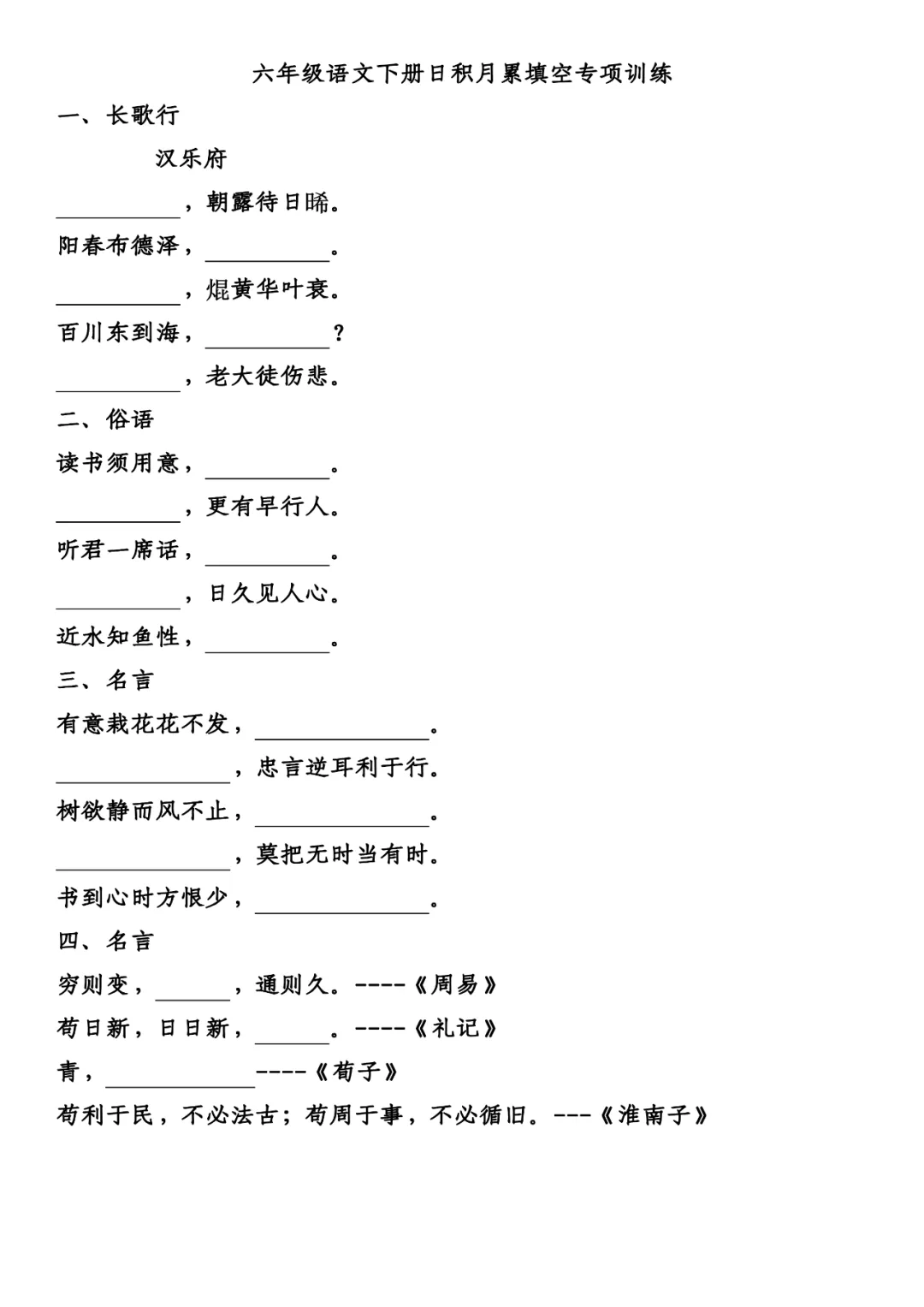六年级下册必背课文专项练习,可打印!