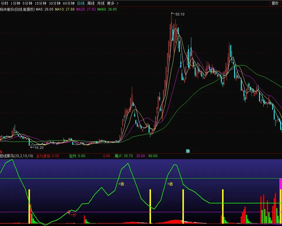 拉升提示:绿色柱状图提示短线拉升机会