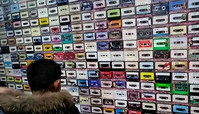 图中一整面墙的五颜六色,其实就是人家特意做的磁带墙,一盒一格,密密麻麻全是回忆,来串门的孩子瞪大眼盯着,试图辨认有几个自家也有同款,磁带年代,能攒一面墙真是厉害,逢年过节亲戚朋友来切歌了,坐一屋子人比着谁能唱全一盘带里的歌,等到现在录音带都淘汰了,这玩意拿出来亮一亮,懂的人知道这墙能换辆车,不懂的人还以为拿来糊墙了。