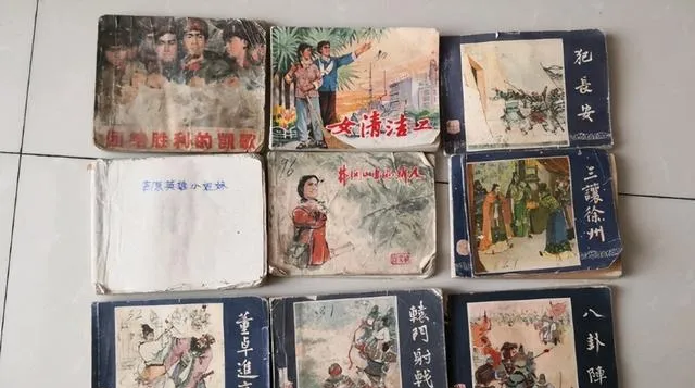 小本头图书,四四方方一页一个故事,这叫连环画,有英雄人物,有历史故事,小时候午饭后就盯着小伙伴去谁家借新本看,攒一摞能念半年,如今能保存下来的都是宝,有的好年代成色还能拍进几万块,可不是开玩笑。