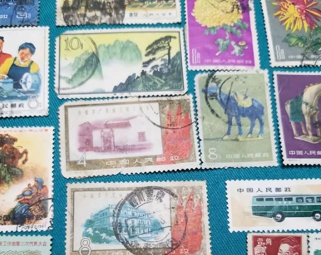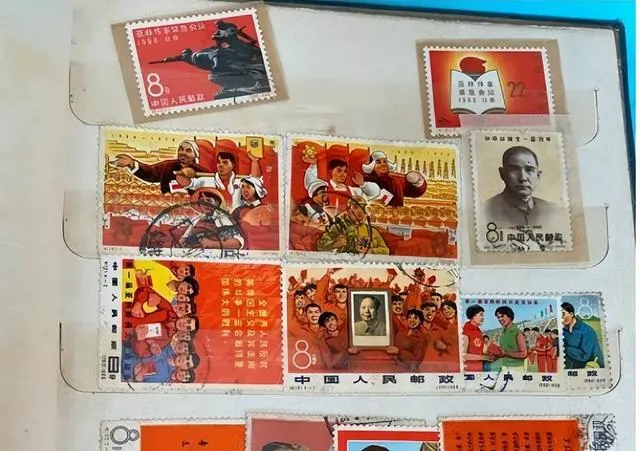 图里这一张张方形小纸片就是老邮票,剪得整整齐齐的齿边,五花八门的颜色,花头还多,那个年代送个信,非得往信封上一粘才算正经,邮票图案五花八门,劳动模范,祖国大好河山,还有伟人像,每次收到回信,拆开之前得先把邮票撕下来,夹在书页里压平,省得折坏了,八分钱,一角,小时候哪管懂什么收藏,就是觉得好看,等现在回头一查价格,一张成色好的“全国山河一片红”,说出去能吓一跳,要能留到现在,妥妥的票友眼里的宝贝了。
