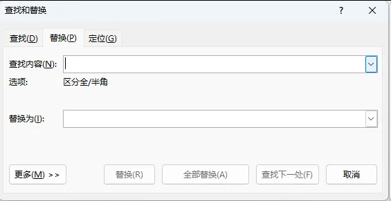 松开按键后,会弹出一个叫「查找和替换」的小窗口,不用管其他内容,只看前两个输入框。