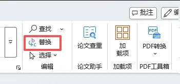 按快捷键没弹出窗口?不用慌,直接点击Word顶部菜单栏的【开始】,在右边找到【替换】按钮,点击一下也能弹出同样的窗口。