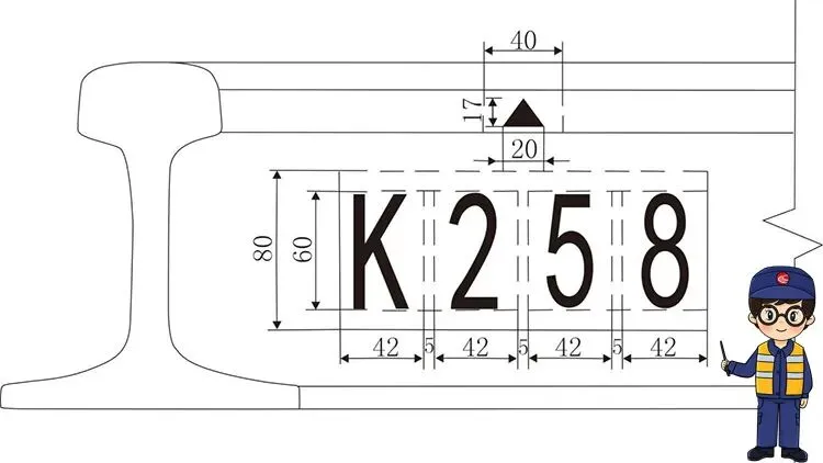 4.标识使用反光油漆刷写,白底黑字,底漆尺寸为210mm×80mm,正楷字体,字高60mm。也可使用阴文刻录在道床板、轨枕上表面。如下图所示:󠄐󠄹󠅀󠄪󠄡󠄨󠄠󠄞󠄡󠄧󠄢󠄞󠄢󠄠󠄞󠄦󠄡󠄬󠅒󠅢󠄟󠄮󠄐󠅅󠄹󠄴󠄪󠄡󠄬󠅒󠅢󠄟󠄮󠄾󠅑󠅝󠅕󠄪󠄡󠄣󠄢󠄧󠄩󠄡󠄩󠄧󠄩󠄧󠄩󠄬󠅒󠅢󠄟󠄮󠇘󠆭󠆘󠇙󠆝󠅵󠇗󠆭󠆁󠄐󠇗󠅹󠅸󠇖󠆍󠅳󠇖󠅹󠅰󠇖󠆌󠅹󠄬󠅒󠅢󠄟󠄮