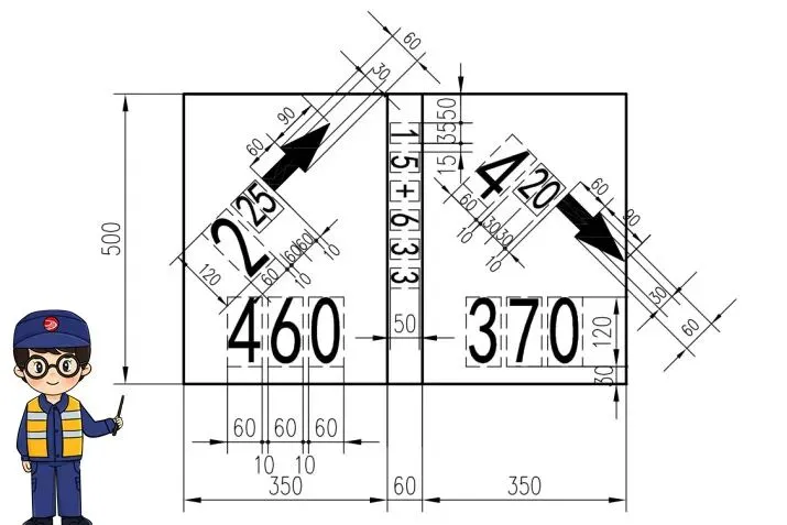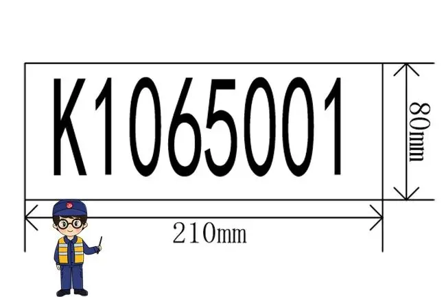 公里标尺寸:一位数时按300mm×150mm设置,二位数时按410mm×150mm设置,三位数时按520mm×150mm设置,四位数时按630mm×150mm设置;半公里标字模按300mm×150mm设置。白底黑字,字高90mm,黑体字。标志底边距轨面垂直高度3.0m,曲线地段以内轨顶面为基准,粘贴时不得覆盖供电接触网杆号标。如下图所示:󠄐󠄹󠅀󠄪󠄡󠄨󠄠󠄞󠄡󠄧󠄢󠄞󠄢󠄠󠄞󠄦󠄡󠄬󠅒󠅢󠄟󠄮󠄐󠅅󠄹󠄴󠄪󠄡󠄬󠅒󠅢󠄟󠄮󠄾󠅑󠅝󠅕󠄪󠄡󠄣󠄢󠄧󠄩󠄡󠄩󠄧󠄩󠄧󠄩󠄬󠅒󠅢󠄟󠄮󠇘󠆭󠆘󠇙󠆝󠅵󠇗󠆭󠆁󠄐󠇗󠅹󠅸󠇖󠆍󠅳󠇖󠅹󠅰󠇖󠆌󠅹󠄬󠅒󠅢󠄟󠄮