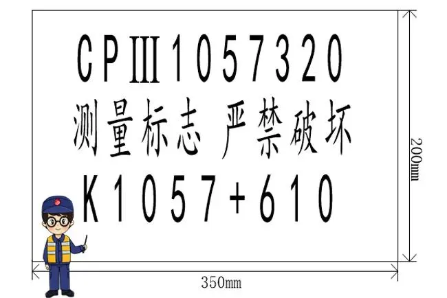 在加密CPⅡ、CPⅢ点位,应清晰、明显地标记点号标识。点号标识规格为350mm×200mm,字高为60mm的正楷字体,白底黑字。